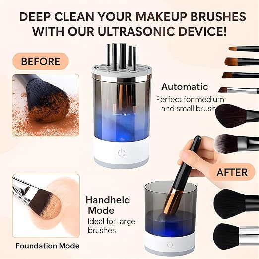 - 💨 Deep Makeup Brush Cleaning Electric makeup brush cleaner machine removes foundation, powder, and cosmetic residue quickly, keeping makeup brushes hygienic for smooth and flawless makeup application